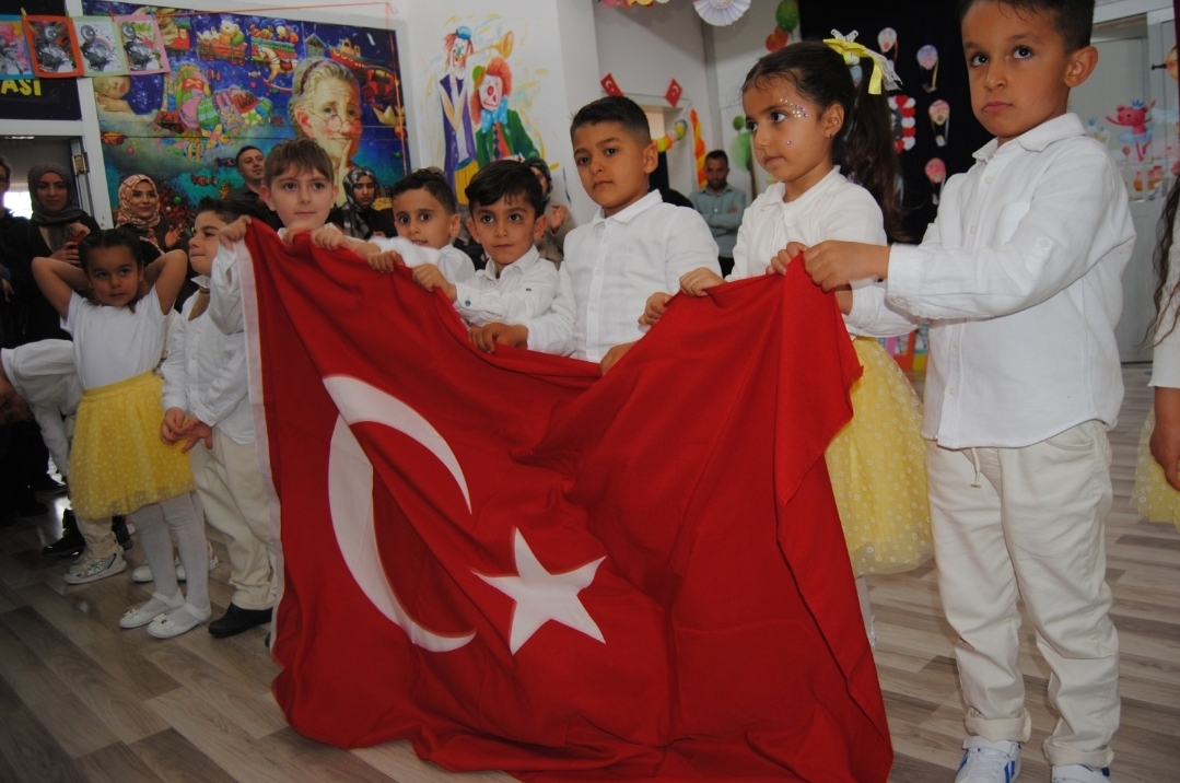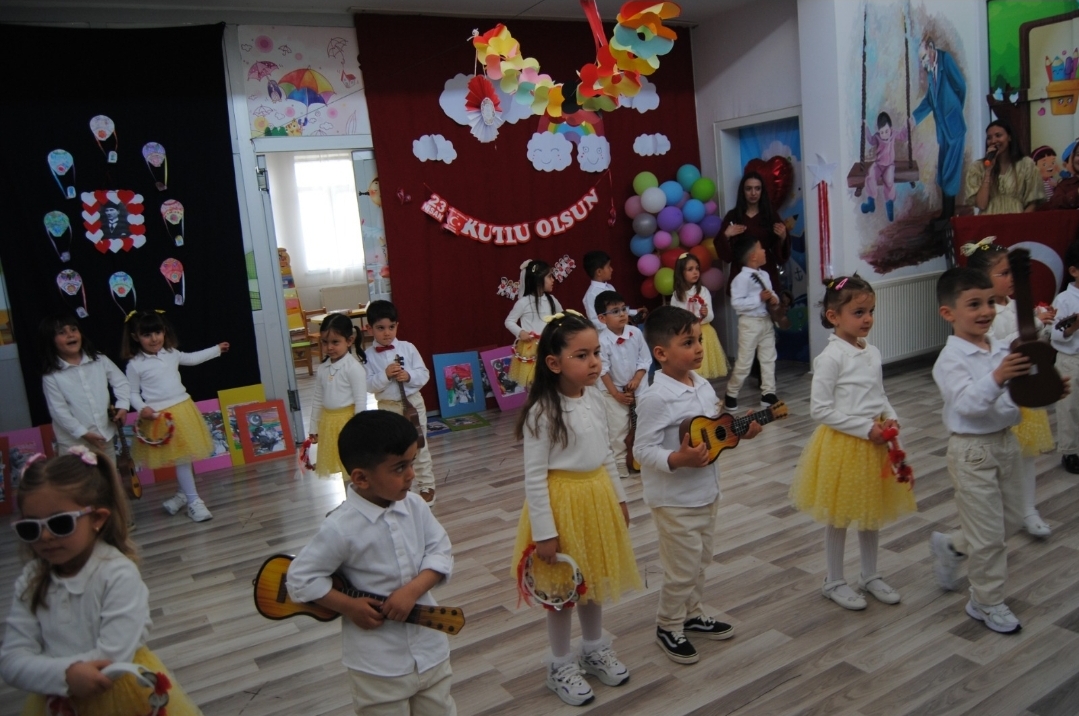 23 Nisan Ulusal Egemenlik ve Çocuk Bayramı’nın 106. yıl dönümü münasebetiyle ilçemiz anaokulunda düzenlenen kutlama programı, izleyenlere duygu dolu ve coşkulu anlar yaşattı. Velilerin eksiksiz katılımıyla gerçekleşen tören, miniklerin devleşen performanslarına sahne oldu.