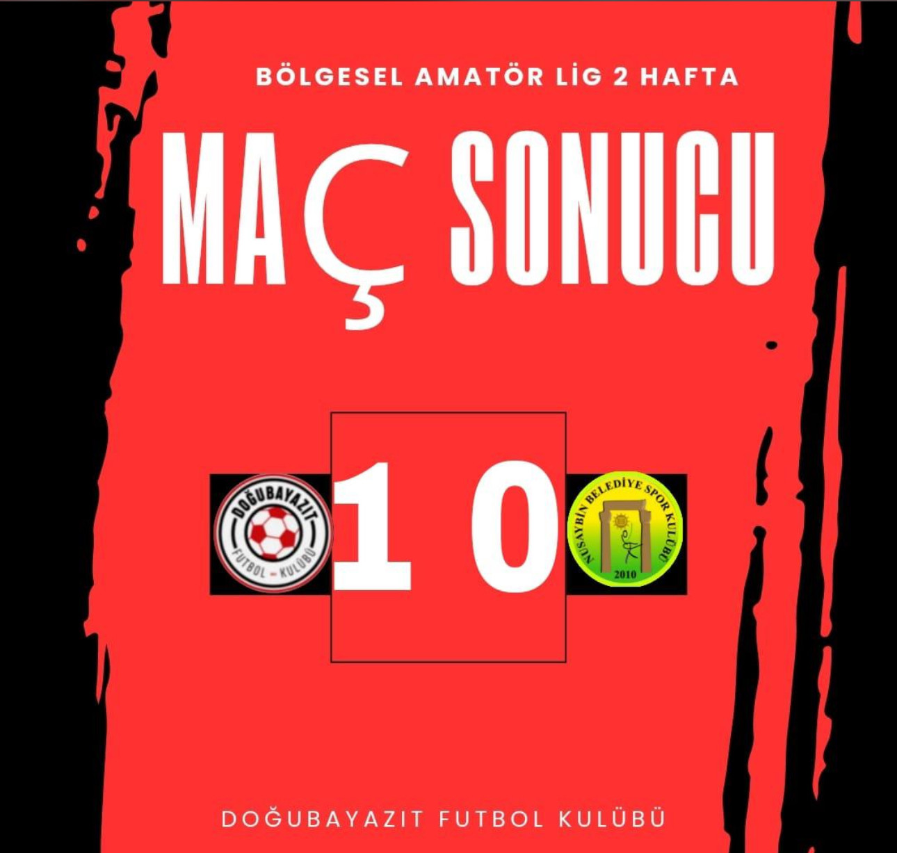Doğubayazıt Futbol Kulübü, kendi sahasında oynadığı zorlu karşılaşmada Mardin Nusaybin Belediyesi Spor’u 1-0 mağlup ederek şampiyonluk yolunda kritik bir galibiyete imza attı. Doğubayazıt Şehir Stadı’nda büyük bir taraftar desteğiyle sahaya çıkan temsilcimiz, maç boyunca üstün bir performans sergiledi. Teknik Direktör Hüseyin Batur yönetimindeki ekip, mücadele gücü ve disipliniyle dikkat çekti.
