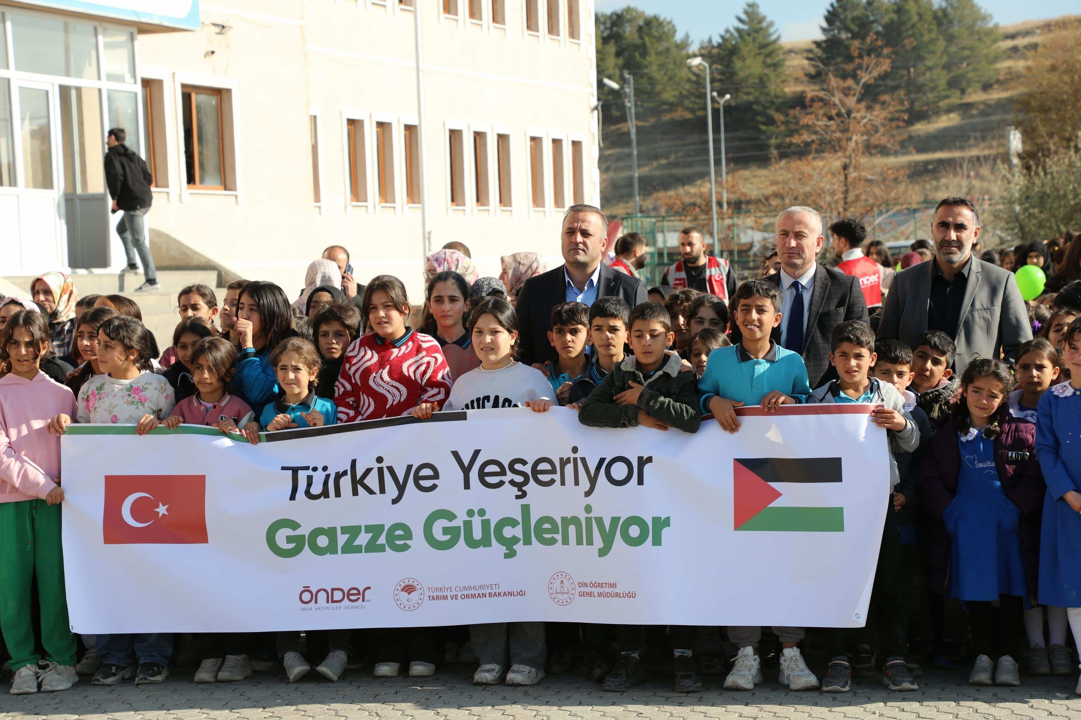 Gençlere çevre ve doğa bilinci kazandırmak, toprağa ve vatana aidiyet duygusunu güçlendirmek amacıyla Yüzüncü Yıl Mahallesindeki okul bahçesinde anlamlı bir etkinlik düzenlendi. Gazze'de hayatını kaybeden çocukların hatıralarını yaşatmayı da hedefleyen program, saygı duruşu ve İstiklal Marşı'nın okunmasıyla başladı. Ardından Kur'an-ı Kerim tilaveti gerçekleştirildi.