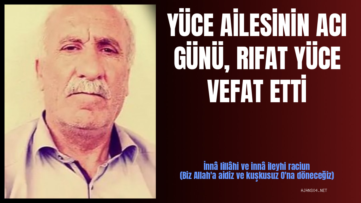 RIFAT YÜCE | 08.11.2025 | YÜCE AİLESİ FERTLERİNDEN RIFAT YÜCE HAKKIN RAHMETİNE KAVUŞMUŞTUR.Ağrı ilimizin emektar öğretmenlerinden Rıfat Yüce, Hakk'ın rahmetine kavuşmuştur. Ağrı'nın Diyadin ilçesinin tanınmış simalarından olan… | Detay göster |