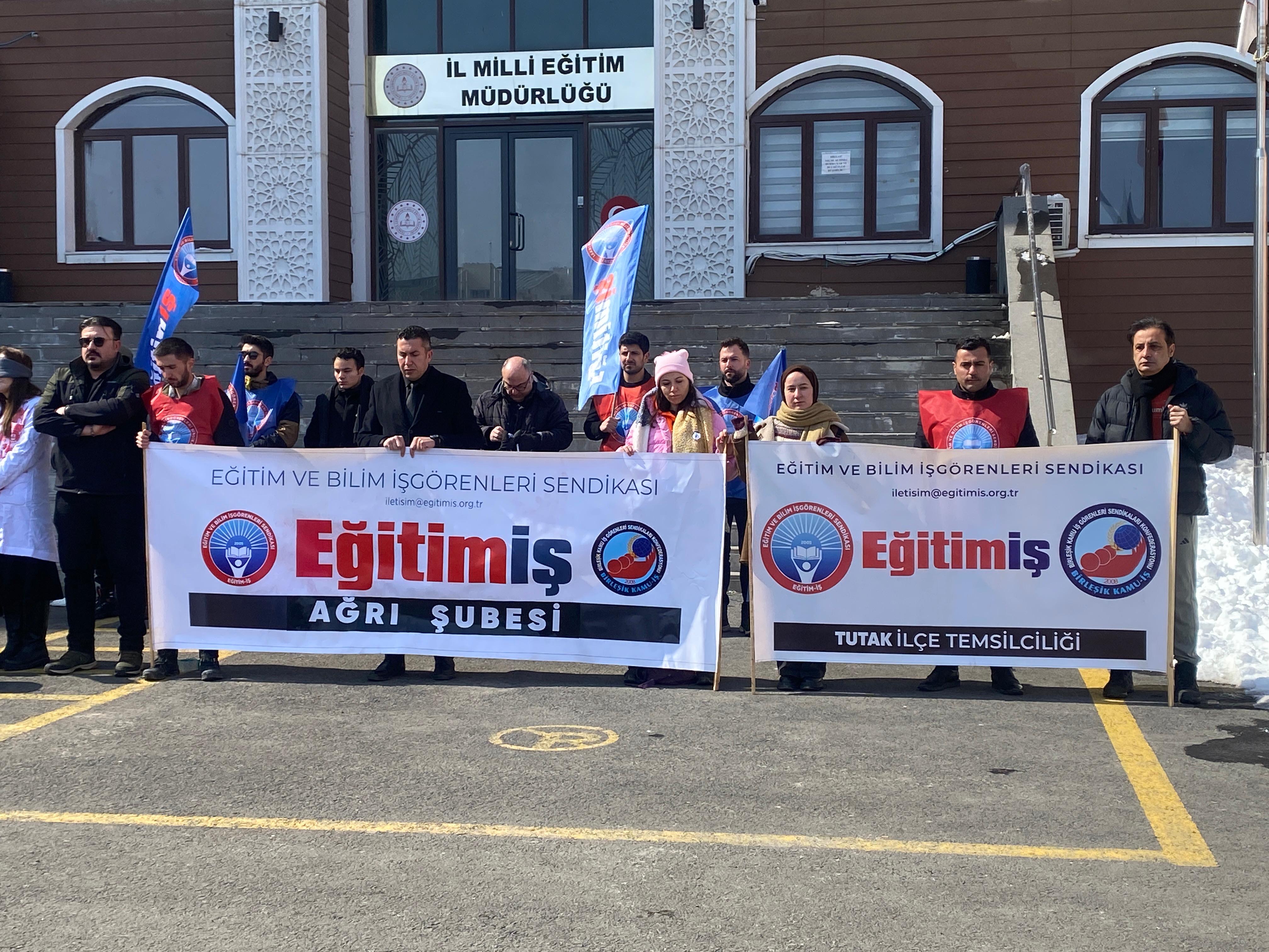 Eğitim-İş Ağrı Şube Başkanı Hüseyin Akboğa, hayatını kaybeden öğretmene rahmet, ailesine ve öğrencilerine sabır, yaralılara ise acil şifalar dileyerek, “Öğrencilerimizin ve eğitim emekçilerinin can güvenliği sağlanıncaya kadar susmayacağız. Mücadelemizi sürdüreceğiz” dedi.