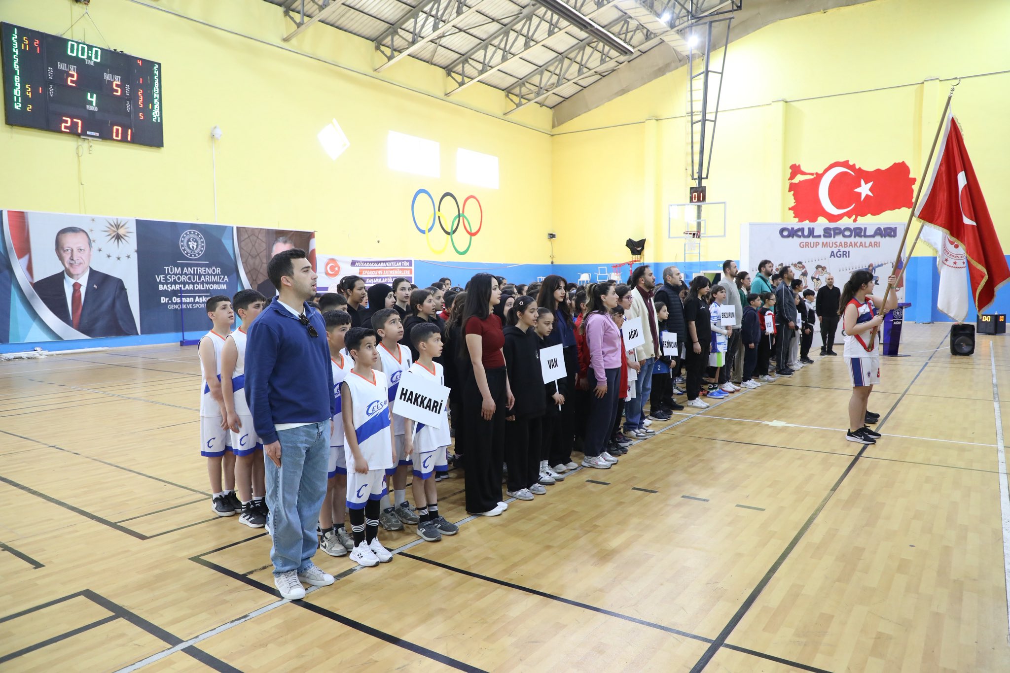 AJANS04 - Ağrı’da okul sporları kapsamında düzenlenen Küçükler Basketbol Kız-Erkek Grup Birinciliği müsabakaları, açılış töreniyle başladı.