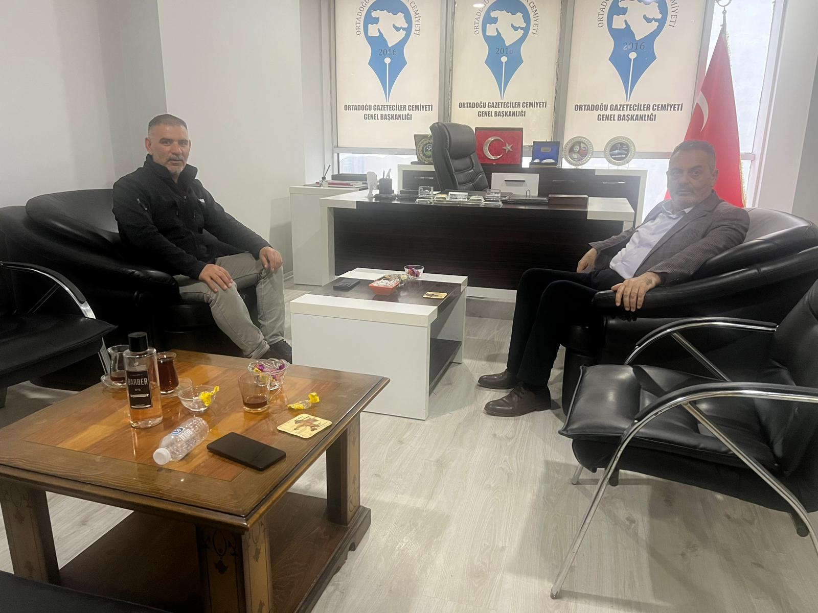 AJANS04 - Ağrı’nın sevilen gazetecilerinden Cenap Elem, Orta Doğu Gazeteciler Cemiyeti Genel Başkanı Nihat Aydın’ı ziyaret etti. Gerçekleşen ziyarette yerel basının sorunları ve medya alanındaki gelişmeler üzerine karşılıklı görüş alışverişinde bulunuldu.