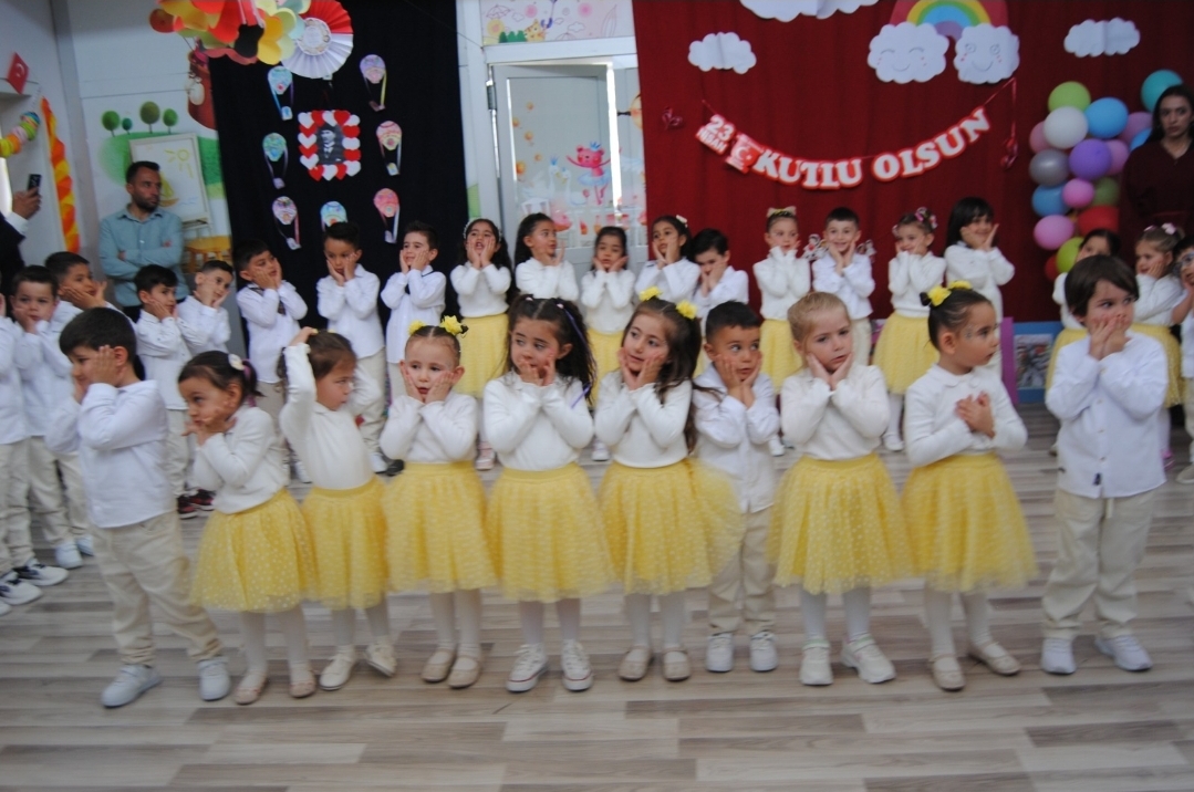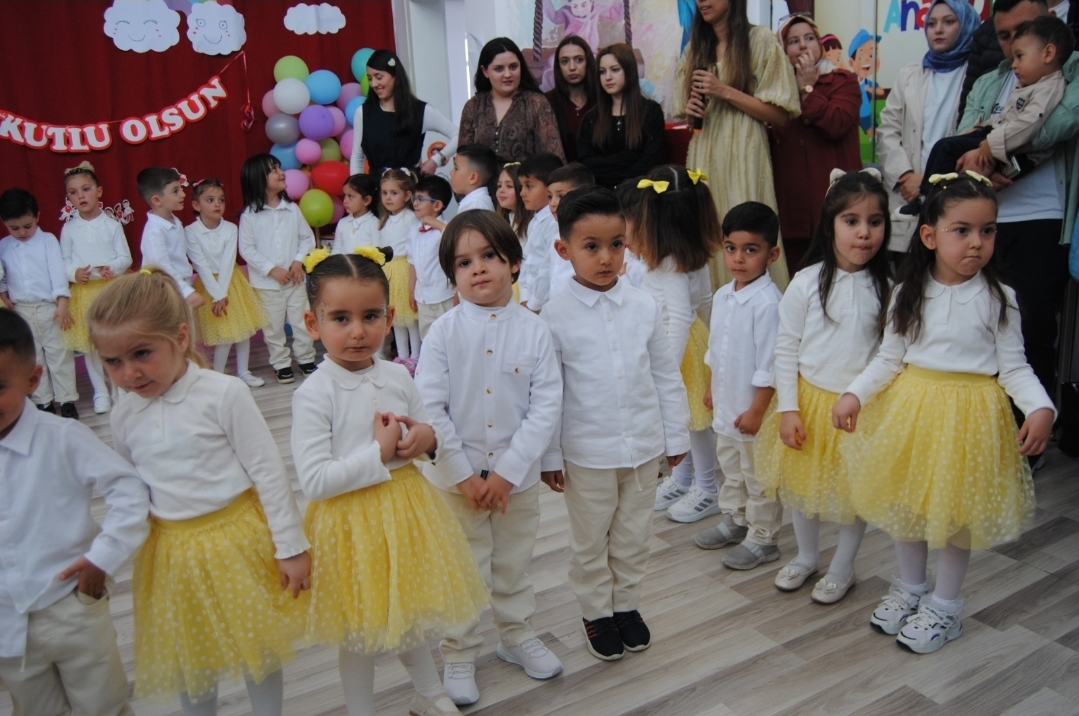 Açılış konuşmasının ardından başlayan program akışında sahne alan 3 yaş, 4 yaş ve 5 yaş grubu öğrencileri, hazırladıkları birbirinden özel gösterilerle izleyenlerde büyük bir hayranlık uyandırdı. Miniklerin özgüveni ve bayram neşesi, törene katılan tüm velilerden büyük beğeni toplarken, salonu dolduran misafirlerin alkışları hiç kesilmedi. Program boyunca sergilenen performanslar, hem görsel bir şölen sundu hem de izleyenlerin gönüllerinde derin bir iz bıraktı.