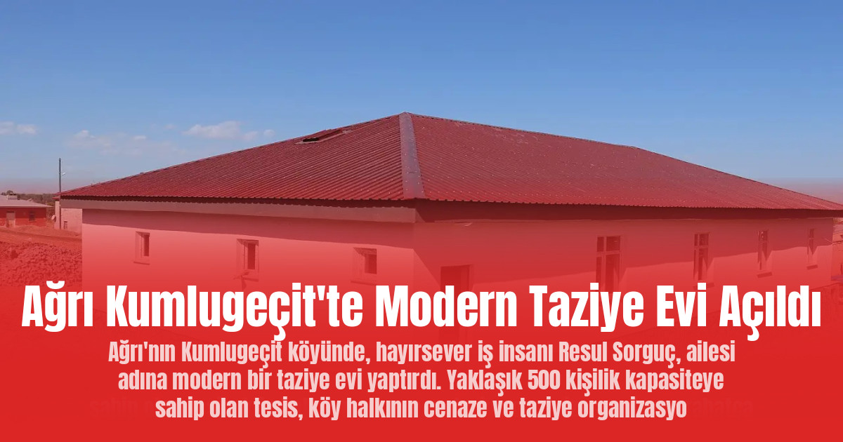 Ağrı'nın Kumlugeçit köyünde, hayırsever iş insanı Resul Sorguç, ailesi adına modern bir taziye evi yaptırdı. Yaklaşık 500 kişilik kapasitey…